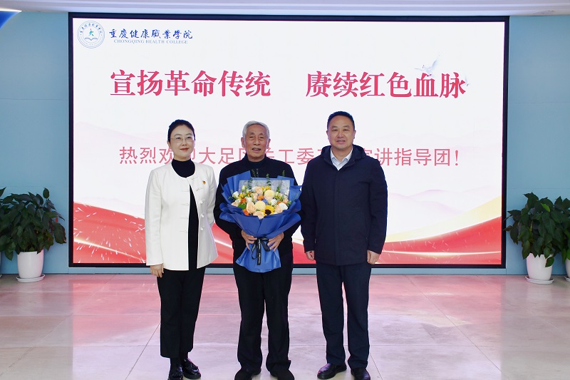 2025年10月27日上午,大足区退休老干部、全国关心下一代“先进个人”龙太国等一行到校,开展“‘五老’宣讲进校园,红色文化润心灵”专题讲座。学校党委书记、督导专员徐虹凌,党委委员、纪委书记、副校长刘华蓥出席活动,五年制高等学院、“石榴籽”思政工作室160余名师生代表参加。
