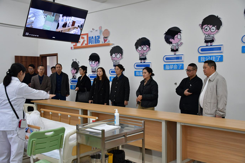 会前,梅建国一行实地走访了jdb电子药学和护理专业实训室,谭工、袁定明、简霞全程陪同。