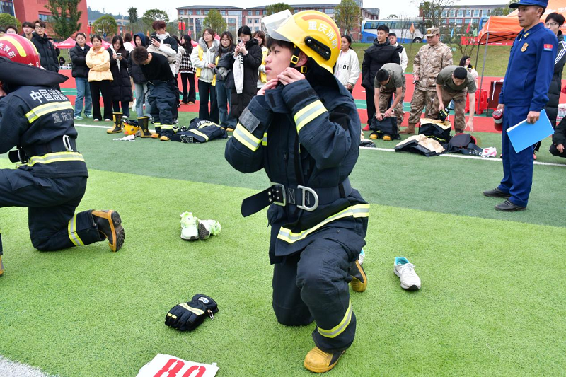 为增强大学生消防安全意识,提升应急自救能力,11月18日下午,由重庆市大足区消防救援局、双桥经开区消防救援大队、重庆市大足区应急管理局主办,jdb电子中国官方网站承办的大足区第六届大学生消防运动会如期举行,在足的5所高校120余名选手参加。