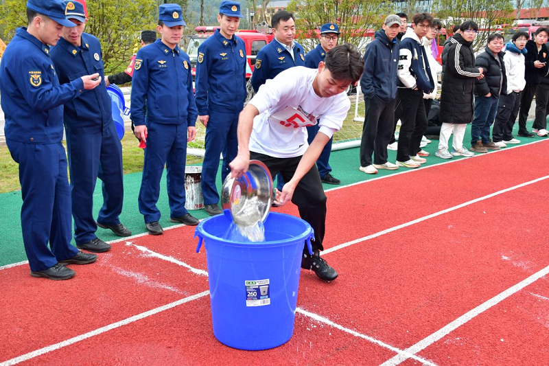 运动会设置有生死时速——消防水带连接击“保龄球”、灭火器接力灭火、紧急救援、灭火战斗服穿戴竞速、平衡运水大比拼5个项目。这些项目不仅将防火、灭火及逃生自救的消防安全知识巧妙融入实践操作,还通过丰富多样的体验形式,让参与者在紧张刺激的竞赛中深刻领悟消防安全的重要性。选手们以精湛绝伦的技艺为剑,以坚韧不拔的斗志为盾,在赛场上纵横驰骋,绽放出最为耀眼的光芒,书写着属于自己的辉煌篇章!