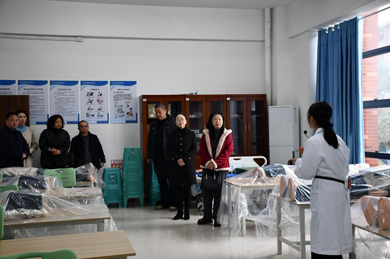 考察团通过实地参观护理、药学、康复治疗等核心专业实训室,设备演示讲解等方式,详细了解了实训教学体系、硬件设施配置、技能培养模式等情况。