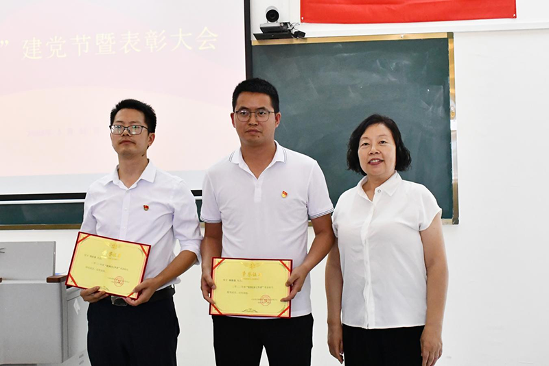 (党总支委员周庆椿为受表彰人员颁奖并合影留恋)
